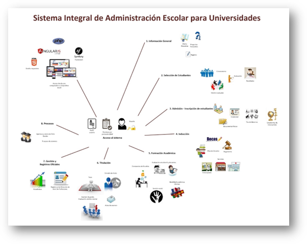 Las universidades, centros tecnológicos e instituciones de educación superior, se enfrentan día a día con diversos problemas que implica la administración de la operación de las carreras, maestrías y doctorados ya que cada vez es más compleja y cambiante debido a las necesidades que se tienen de contar con un registro de convocatorias y postulantes a las diversas carreras en línea y de forma ágil, la evaluación de los mismos, registro y control de estudiantes, grupos y materias pero sobre todo el control de registros oficiales, materias extra curriculares, materias extra a carga académica, órdenes de pago, convenios, becas, servicio social de externos, servicios extemporáneos, propedéuticos, movilidad académica, etc., una serie de servicios determinadamente complejos que permiten controlar sobre todo lo concerniente a maestrías y doctorados.
